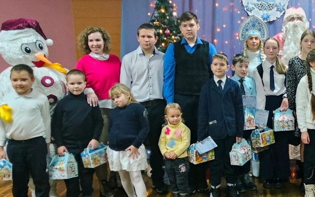 В каждом из них детям вручают сладкие новогодние подарки от Алексея Журавлева и поздравляют с наступающим праздником.
