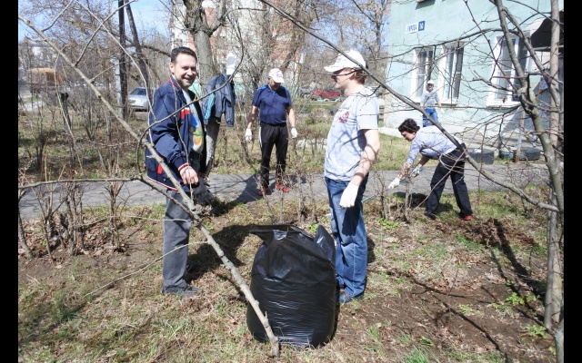 22 апреля дзержинские активисты партии "РОДИНА" во главе с председателем местного отделения Сергеем Чендыриным провели субботник около партийного офиса, находящегося в жилом доме.