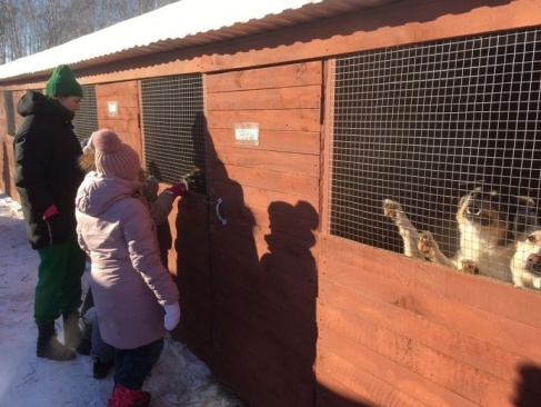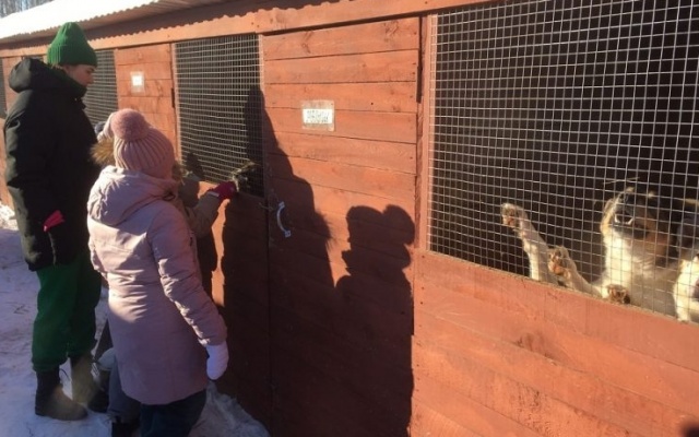 Школьники посетили площадку временного содержания безнадзорных животных "Хвостатые друзья" в жилом районе Пашино города Новосибирска.