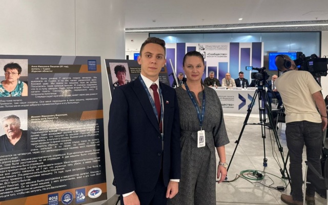 Заместитель председателя реготделения партии "РОДИНА" в Москве Мария Соломатина и руководитель аппарата реготделения Даниил Литвинов в рамках форума "Сообщество", организованного Общественной палатой РФ, посетили работу секции "О преступлениях украинского неонацистского режима в Курской области (Материалы Международного общественного трибунала по преступлениям украинских неонацистов)".